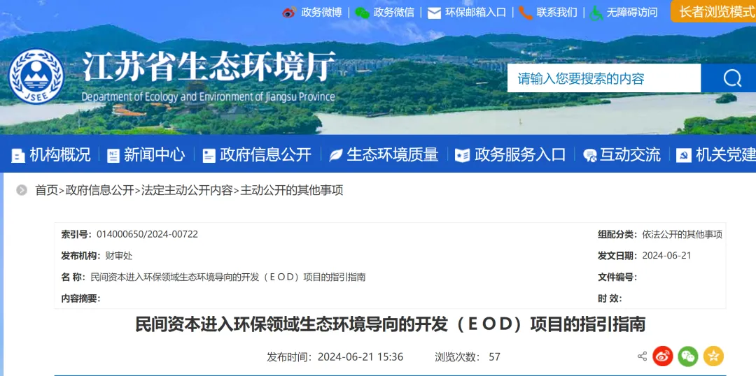 本指南適用于民間資本參與江蘇省內(nèi)采用EOD模式實施的項目。本指南所稱EOD模式是以習近平生態(tài)文明思想為引領(lǐng),通過產(chǎn)業(yè)鏈延伸、組合開發(fā)、聯(lián)合經(jīng)營等方式,推動公益性較強的生態(tài)環(huán)境治理與收益較好的關(guān)聯(lián)產(chǎn)業(yè)有效融合、增值反哺、統(tǒng)籌推進、市場化運作、一體化實施、可持續(xù)運營,以生態(tài)環(huán)境治理提升關(guān)聯(lián)產(chǎn)業(yè)經(jīng)營收益,以產(chǎn)業(yè)增值收益反哺生態(tài)環(huán)境治理投入,實現(xiàn)生態(tài)環(huán)境治理外部經(jīng)濟性內(nèi)部化的創(chuàng)新性項目組織實施方式,是踐行綠水青山就是金山銀山理念的項目實踐,有利于積極穩(wěn)妥推進生態(tài)產(chǎn)品經(jīng)營開發(fā),推動生態(tài)產(chǎn)品價值有效實現(xiàn)。2