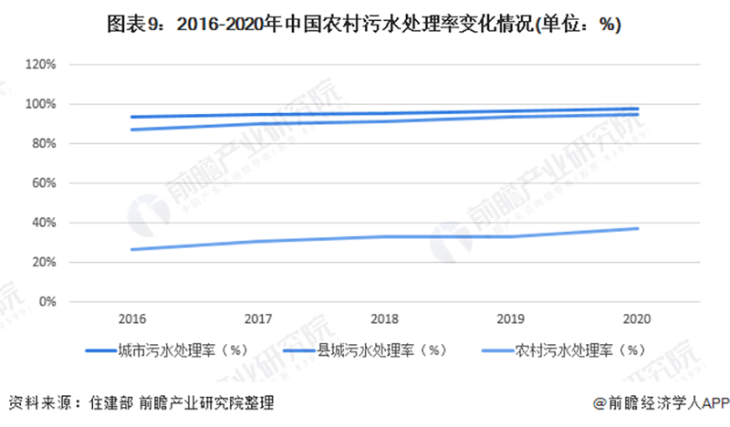 注:農(nóng)村污水處理率為前瞻根據(jù)各區(qū)域?qū)嶋H用水量及各區(qū)域污水處理率加權(quán)測(cè)算值。