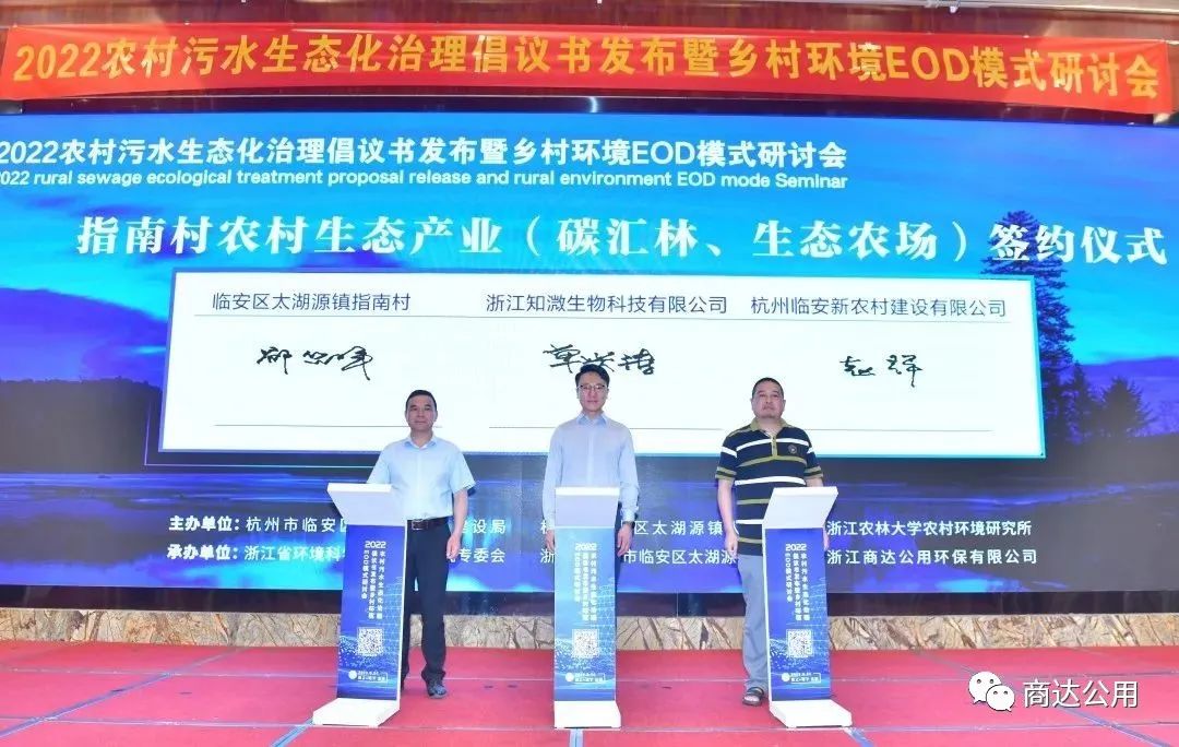 2022年6月,農(nóng)村污水生態(tài)化治理倡議書發(fā)布暨鄉(xiāng)村環(huán)境EOD模式研討會在臨安開幕。浙江商達(dá)公用環(huán)保有限公司聯(lián)合三峽集團(tuán)、葛洲壩集團(tuán)、北控水務(wù)集團(tuán)、中建三局、富春紫光環(huán)保、杭州水務(wù)、省建投環(huán)保、華東勘測設(shè)計院、華設(shè)集團(tuán)等行業(yè)單位共同發(fā)布了《2022農(nóng)村污水生態(tài)化治理倡議書》,更好地推動農(nóng)村污水生態(tài)化治理。