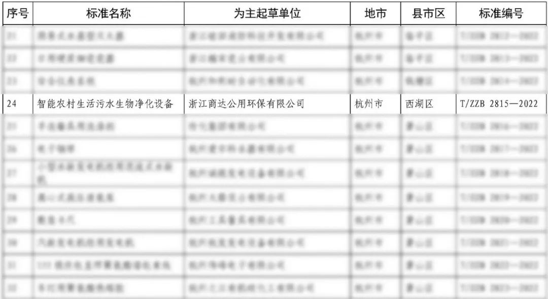 同年12月,浙江省品牌建設(shè)聯(lián)合會(huì)根據(jù)《關(guān)于加快“浙江制造”標(biāo)準(zhǔn)制定和實(shí)施工作的指導(dǎo)意見》,226項(xiàng)標(biāo)準(zhǔn)經(jīng)由聯(lián)合會(huì)批準(zhǔn)成為“品字標(biāo)”團(tuán)體標(biāo)準(zhǔn)。商達(dá)公用起草主編的T/ZZB 2815—2022《智能農(nóng)村生活污水生物凈化設(shè)備》名列榜單,自2022年12月31日起實(shí)施。