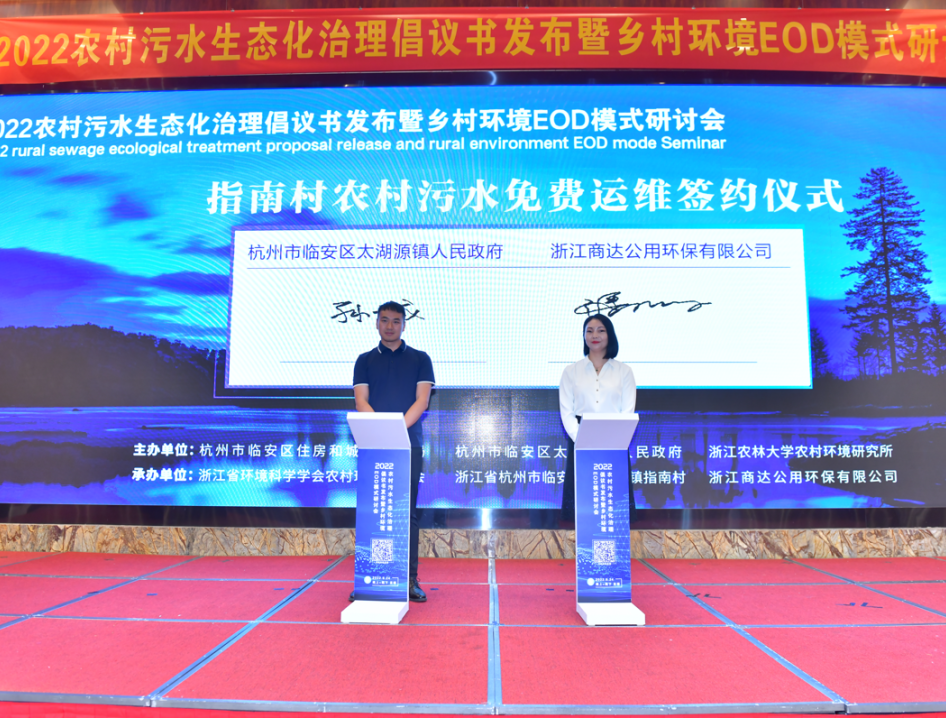 2022年,商達(dá)公用承辦2022農(nóng)村污水生態(tài)化治理倡議書發(fā)布暨鄉(xiāng)村環(huán)境EOD模式研討會(huì),旨在為更好地推動(dòng)農(nóng)村污水生態(tài)化治理,緩解資金瓶頸,助力鄉(xiāng)村振興與碳中和國(guó)家戰(zhàn)略,建設(shè)共同富裕示范區(qū)。