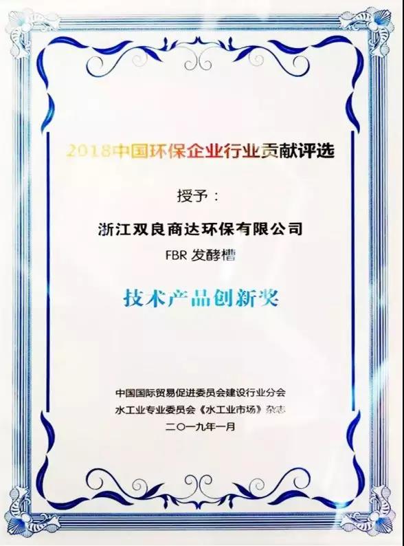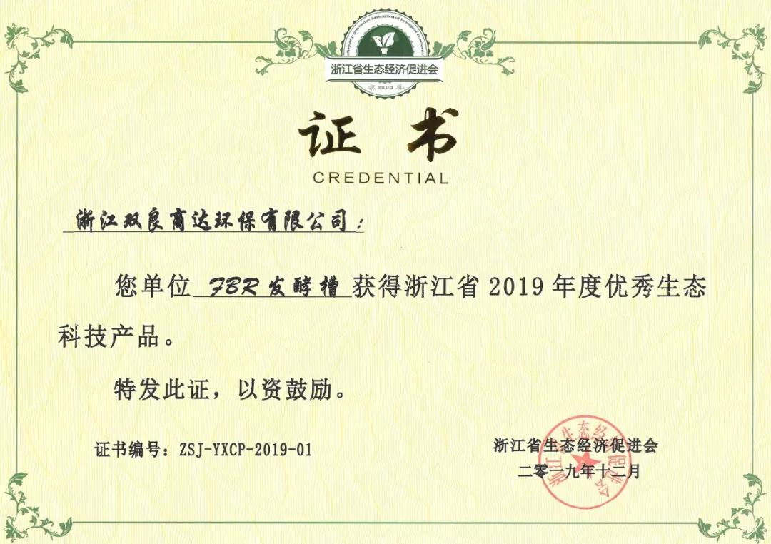9、FBR發(fā)酵槽榮獲浙江省“2019年度優(yōu)秀科技生態(tài)產(chǎn)品”及村鎮(zhèn)環(huán)境聯(lián)盟“技術(shù)產(chǎn)品創(chuàng)新獎”
